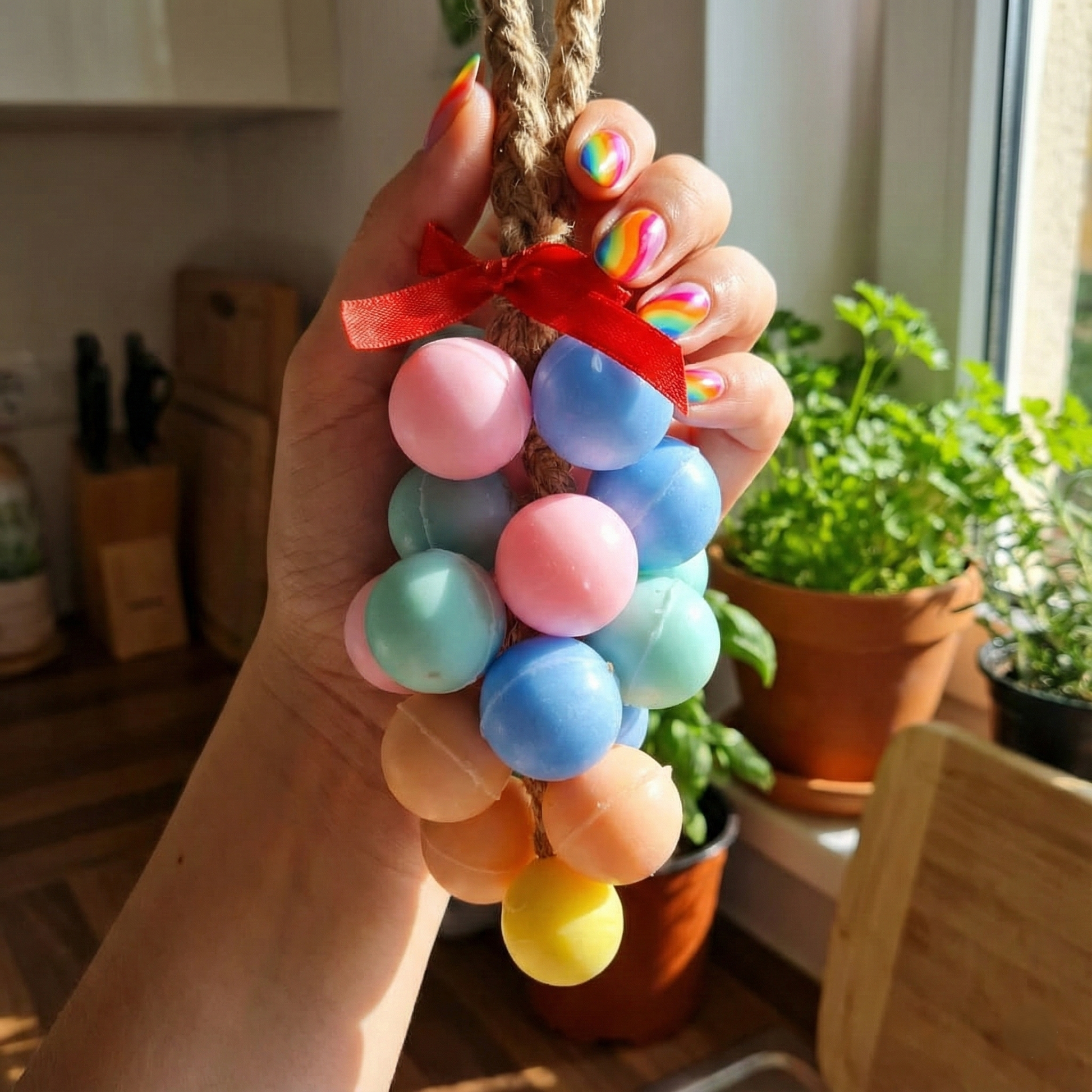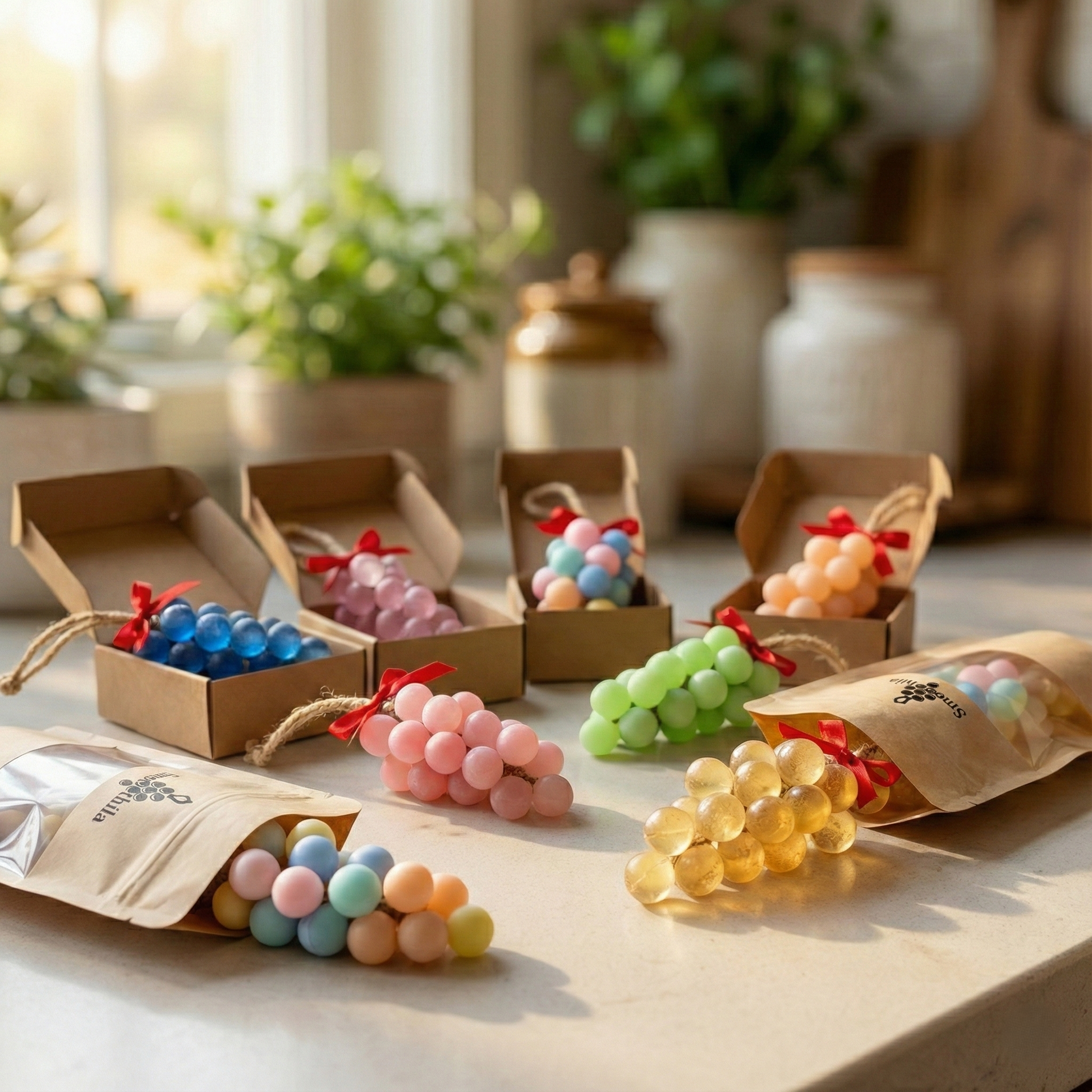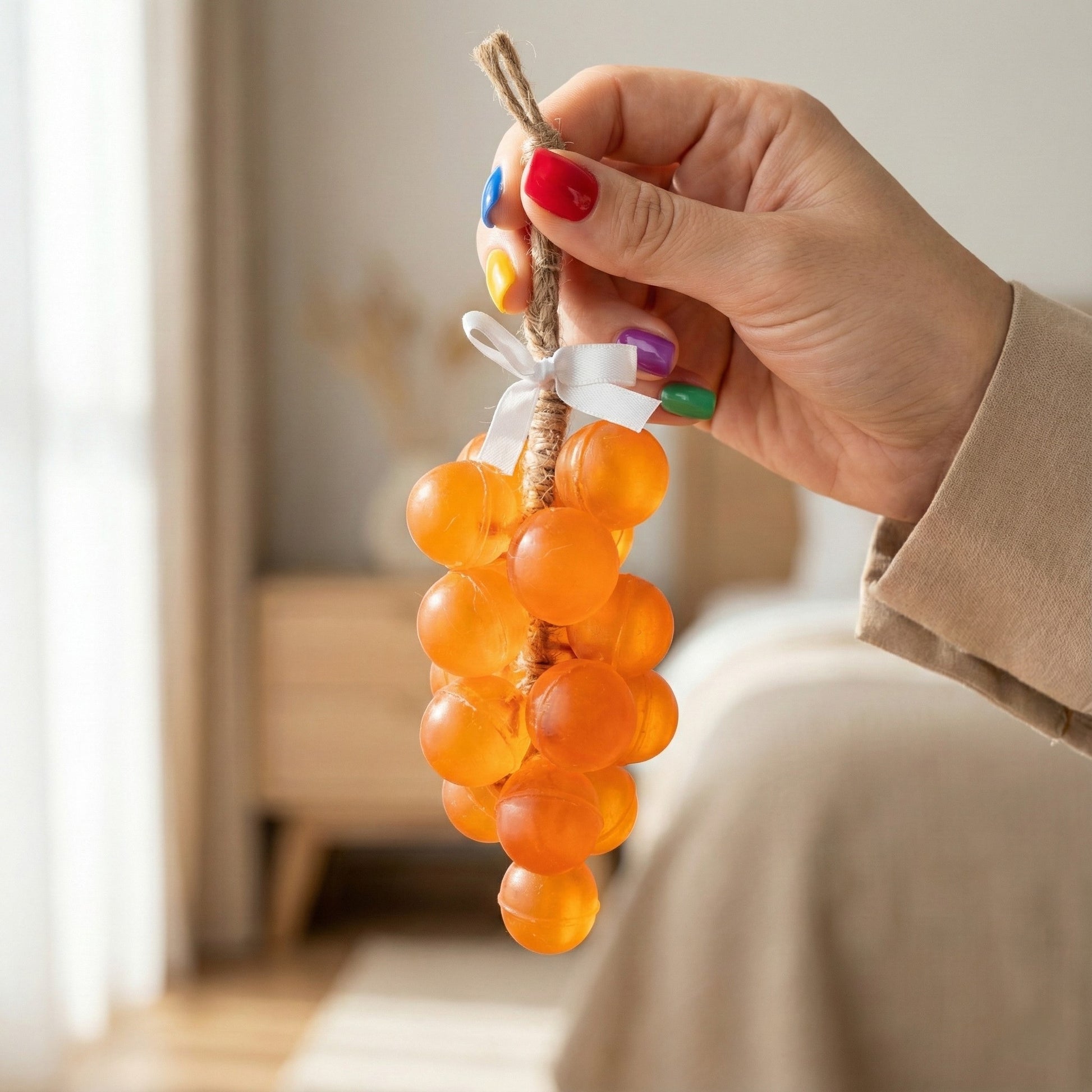 Hayır, gerçek üzüm değildir. Tamamen doğal sabun hamurundan yapılmış özel bir el yapımı üründür.